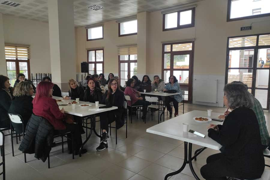 Kız kardeşlik köprüsüyle hayatı yeniden kurma, dayanışmayı büyütme çağrısıyla 8 Mart etkinliğinde buluşan Bornova Kadın Dayanışma Derneği üyeleri, SES İzmir Şube Yönetici Hava Akcan’ın katılımıyla söyleşi düzenledi.