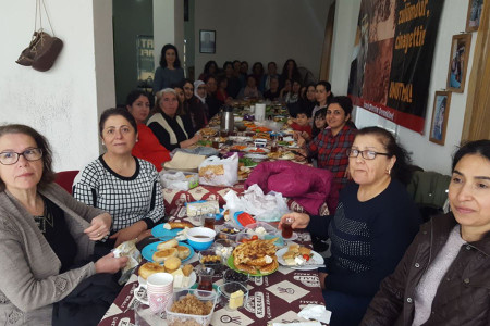 8 Mart öncesi Bornova Kadın Dayanışma Derneği çağrısıyla kahvaltıda bir araya gelen kadınlar savaşa karşı barışa ve artan yoksulluğa dikkat çekti.