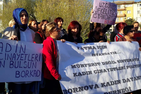 İzmir’de Fatma Yıldız, kız kardeşinin eşi tarafından çocuklarının önünde öldürüldü. BORKAD’lı kadınlar olayın yaşandığı parkta açıklama yaparak kadın cinayetleirne tepki gösterdi.