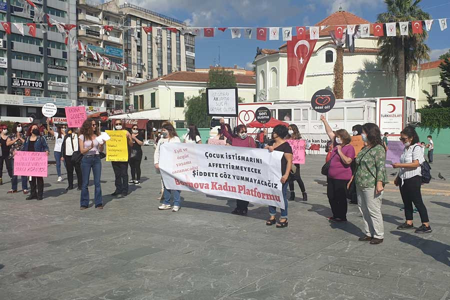Bornova Meydanında yapılan açıklamada “Çocuk istismarını aklatmayacağız” , “Kadın cinayetleri politiktir” , “Yaşasın kadın dayanışması” sloganları atılırken, açıklamayı ise kadınlar adına Serpil Orhan okudu. Orhan, İçişleri Bakanlığı tarafından salgın döneminde kadına yönelik şiddetin azaldığı yönündeki açıklamalarına tepki gösterdi.K adına yönelik şiddetin arttığını verilerle sunan Orhan, “Bu veriler bile yeterince korkunçken, her durumda kendilerine övünç kaynağı bulmayı başaran iktidar, sadece korona günlerinde değil her daim evde kalması gerektiğini düşündüğü kadınları heveslendirmek için olsa gerek, korona günlerinde “evde kalan” kadınlara şiddetin azaldığını ilan ediverdi.”diye konuştu.