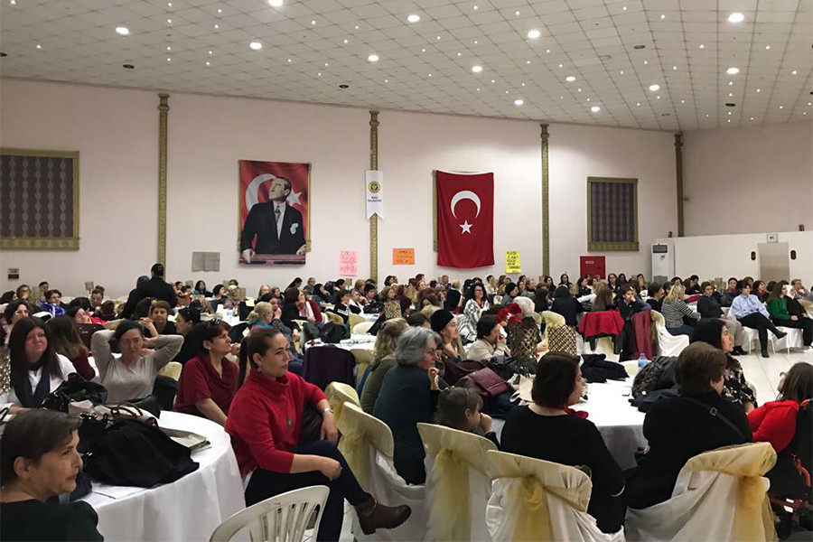 İzmir’de işçi, emekçi, üniversiteli her kesimden kadınlar ‘Eşit, özgür, savaşsız, sömürüsüz bir yaşam’ talebiyle 8 Mart’ı kutluyor. 8 Mart Dünya Emekçi Kadınlar Günü için uzunca bir süredir çalışma yapan BEKEV de kadınlarla Şirinyer Düğün Salonu’nda buluştu. Etkinlik BEKEV Başkanı Nefize Selçuk’un konuşmasıyla başladı. “8 Mart tüm dünyada kadınların eşit, özgür, emeğe saygılı ve daha huzurlu olma taleplerini yücelttiği bir gündür, 8 Mart emekçi kadınların mücadele tarihidir” diyen Selçuk erken yaşta evliliklere, kamuoyunda büyük öfke yaratan çocuk istismarı haberlerine tepki gösterdi. Şelçuk “Şiddete, çocuk istismarına, savaşa karşı mücadelede birleşelim” dedi.