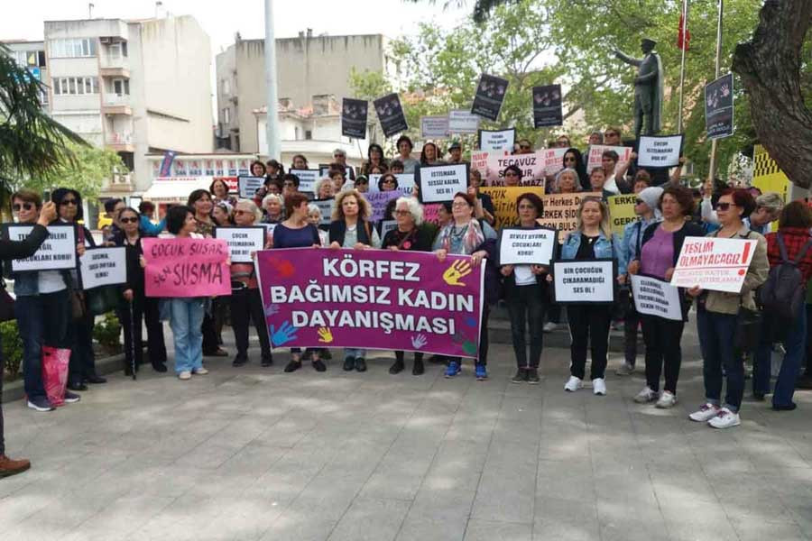 Körfez Bağımsız Kadın Dayanışması Platformu üyeleri, 2 öğrencisini istismara maruz bıraktığı için tutuklanan rehber öğretmenini protesto etmek için Cumhuriyet Meydanı’nda toplandı. Kadınlar, “Bu davanın takipçisi olacağız” dedi.