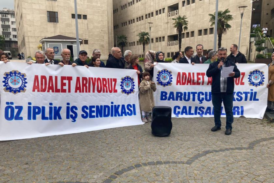 Barutçu Tekstil’de sendikalaştıkları için işten atılan Öz İplik-İş üyesi 8 kadın işçinin fabrika önünde başlattığı direniş sürerken, patron işçilerin beklediği alana amonyak dolu tankları ağzı açık şekilde bırakarak direnişi kırmaya çalışmıştı. Sendika yapılan bu girişimi yargıya taşımıştı. Bugün davanın karar duruşması Bursa Adliyesinde görüldü. Dava öncesi Öz İplik-İş adliye önünde açıklama yaptı. Yapılan açıklamaya CHP Bursa Milletvekili Orhan Sarıbal destek verdi.