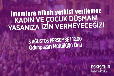 ‘Kadın ve çocuk düşmanı yasanıza izin vermeyeceğiz’ diyen Eskişehir Kadınları Platformu tüm kadınları eyleme davet ediyor.