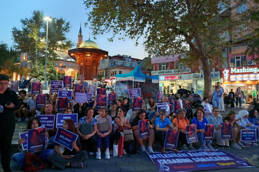 Bursa Kadın Platformunun çağrısıyla kadınlar, 4 Ekim günü fail Semih Çelik tarafından yarım saat arayla katledilen İkbal Uzuner ve Ayşenur Halil için bir araya geldi.