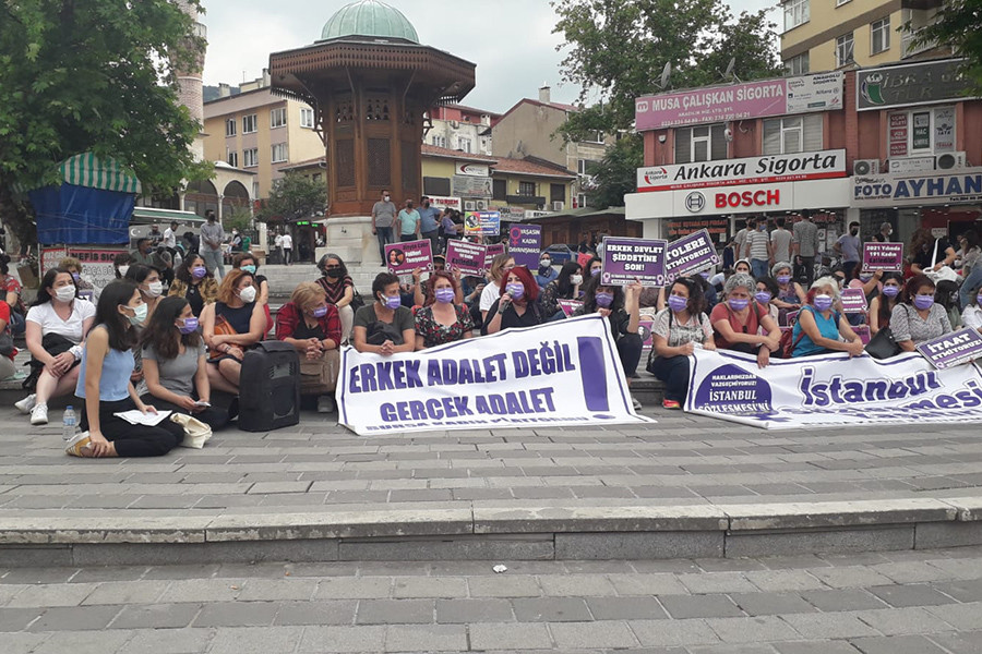 "Bir gece yarısı, kararnameyle, tek bir adamın kararı ile Meclis’e sormadan, kimseye sormadan, kadınlara sormadan İstanbul Sözleşmesi kaldırıldı. Bizi şiddetten koruyan, devlete bu şiddeti önle diyen Sözleşme'den yangından mal kaçırır gibi çıkıldı. Daha geçtiğimiz yaz İstanbul Sözleşmesi uygulansın demek için burada, bu meydandaydık. Her kesimden kadın her yerde İstanbul Sözleşmesi’ne sahip çıktı, bu sözleşme hayatlarımız için dedi. Bu sözleşme bizim dedi. Ama erkekler yine şaşırtmadı, yine bir gece yarısı bizim adımıza karar verdi. Can güvenliğinizi korumak önceliğimiz değil dediler. Bunu biliyoruz zaten ve kabul etmiyoruz" diyen kadınlar, yaptıkları açıklamada Sözleşme'nin madde ve bentlerine de değindiler.