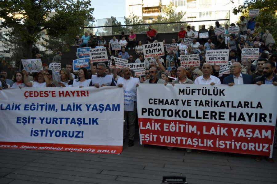 Okullara ‘manevi rehber’ olarak imam, vaiz atanmasını öngören ÇEDES projesine pilot il seçilen İzmir’de eğitimci ve veliler kitlesel bir mitingle ‘dur’ dedi.
