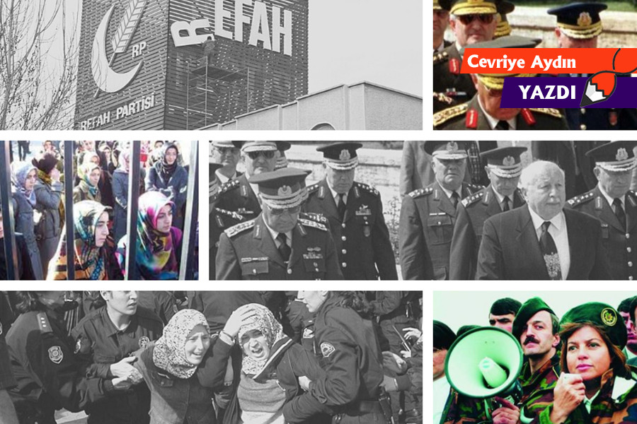 Her fırsatta hak ve özgürlük kısıtlamaları, siyasal, sendikal ve hak temelli örgütlerinden, hak ve özgürlüklerinden arındırarak türlü sömürü biçimlerine karşı savunmasız bırakılmış bir toplum yaratmak, egemen sınıfların her zaman en büyük özlemi olmuştur. Milli Görüş adıyla siyasal arenada güç kazanmış olan dinci gericilik de egemen sınıflarla aynı özlemleri dinsel argümanlarla bezeyerek, paylaşıyordu. “28 Şubat”a varan süreç, görülüyor ki, bu stratejinin bir adımıydı. Kadınların hak ve özgürlük mücadelesinin her geçen gün arttığı, bunun getirdiği kısmi kazanımların yaşandığı bir süreçte bu dokunun değiştirilebilmesinin temel koşulu ve eşiği, kadınları susturmaktı. İslam’ın hukuk düzeni de zaten kadınlara ikinci sınıf, ancak aile içinde bir varlık hakkı tanıyordu.