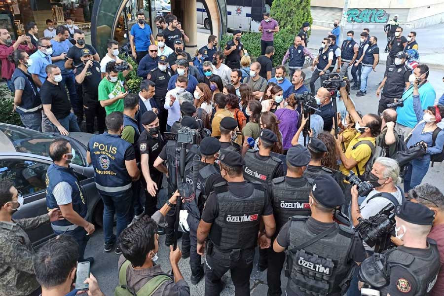İstanbul’da Emek Barış ve Demokrasi Güçleri’nin düzenleyeceği 1 Eylül Dünya Barış Günü mitinginin engellenmesi üzerine yapılan basın açıklamasına polis müdahale etmişti. Müdahaleyi görüntüleyen Muhabirimiz Eylem Nazlıer’in telefonuna polis zorla el koymaya çalıştı.