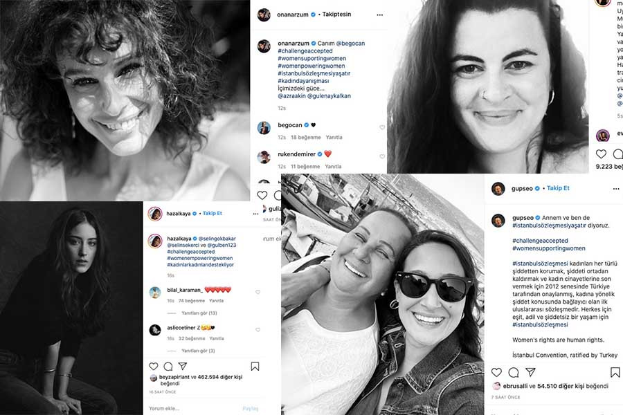 Sosyal medyada da bu tepkiler sürerken kadınlar ‘siyah beyaz challange’ (meydan okuma) akımıyla siyah beyaz fotoğraflarını paylaştı ve altına #İstanbulSözleşmesiYaşatır #KadınKadınınYurdudur #KadınCinayetleriSonBulsun gibi etiketler dizdi. Challange sadece Türkiye’de değil dünyanın başkaca ülkelerinden kadınların da yanıt verdiği, ünlülerin de siyah beyaz fotoğraflarını yayımlayarak kadın cinayetlerine tepki gösterdiği bir eyleme dönüştü. Sosyal medya akışları siyah beyaz kadın fotoğraflarıyla dolup taştı.
