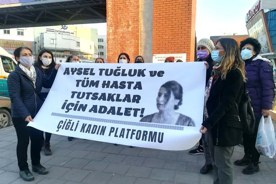 Çiğli Kadın Platformu, ciddi sağlık sorunları yaşadığı halde cezaevinde tutulan HDP önceki dönem Eş Genel Başkan Yardımcısı Aysel Tuğluk için basın açıklaması yaptı. Çiğli Belediyesi önünde yapılan açıklamayı Çiğli Kadın Platformu adına Emine Akbaba okudu.