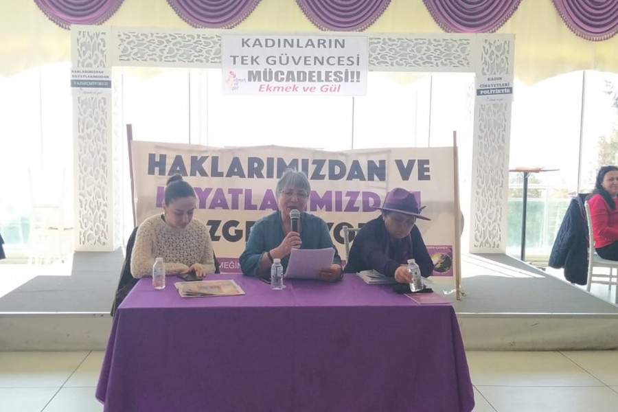 Söyleşinin moderatörlüğünü yapan Birgül Kaya ise kadınların tüm dünyadaki mücadelelerinden örnekler vererek, "Özellikle işçi, emekçi kadınların dişiyle, tırnağıyla ve kanıyla verdikleri mücadele bugünkü haklarımızı elde etmemizi sağlamıştır. Kadınlar da dahil bütün dünyada işçi, emekçi mücadelesinin gerilediği dönemlerde egemenler, en başta kadınlar olmak üzere tüm işçi ve emekçilerin haklarına saldırmakta ve bu saldırılar giderek yoğunlaşmaktadır. İşte bu söyleşiyi düzenlemekteki amacımız, saldırıları püskürtmek ve taleplerimizi elde etmek için hep beraber neler yapabileceğimizi konuşmak ve tartışmaktır" diye konuştu.