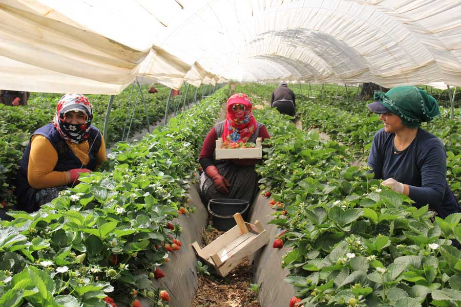 Mezopotamya Ajansından Semra Turan’ın haberine göre, kadın işçiler hem koronavirüs tehdidi altında hem de oruçlu halde örtü altı seraların sıcaklığında çilek topluyor. Evine ekmek götürebilmek için sabah saat 05.00’te uyanıp tarlalarda mesaileri başlayan kadınlar, günlük 70 lira yevmiye alıyor. Oruç nedeniyle şimdilik saat 13.00’a kadar çalışan kadınlar, aldıkları yevmiyenin ancak ekmek ve su parasına yettiğini belirtiyor.