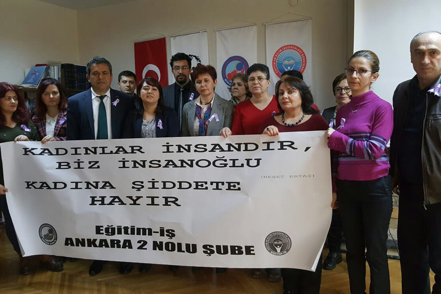Sanık eş ise ifadesinde tartışırken karısının ayağa kalkınca kayıp düştüğünü, düşerken gözünden darbe aldığını iddia etti. Sanığın da Eğitim İş üyesi olduğunu söyleyen Banu Günüç, “Yargılanan öğretmen eş de maalesef üyemiz. Her ne olursa olsun biz mutlaka tarafız. Kadın arkadaşımızı böyle bir durumda yalnız bırakamazdık. Suç kesinleşince, yargılanan ve üyemiz olan eş için disiplin işlemi başlatacağız. Suçlu bulunması halinde üyelikten çıkaracağız” diye konuştu.