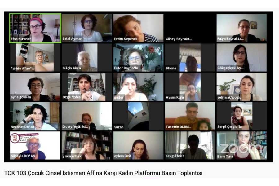 279 kadın örgütünün imzacısı olduğu TCK 103 Çocuk Cinsel İstismarına Karşı Kadın Platformu, online olarak düzenlediği basın toplantısında çocuk istismarı faillerine evlilikle af tasarısını Meclisten geçirmeyeceklerini vurguladı. Açılış konuşmasını yapan Avukat Hülya Gülbahar, çocuk istismarı tasarısına ilişkin her gece gözlerinin Meclis TV’de olduğunu söyleyerek, “2016 yılından beri gece nöbetçisiyiz. 15 Temmuz’a kadar tetikte olacağız, nöbetimiz 15 Temmuz’a kadar sürecek. Biz affın tamamen gündemden çıkarılmasını istiyoruz” dedi.