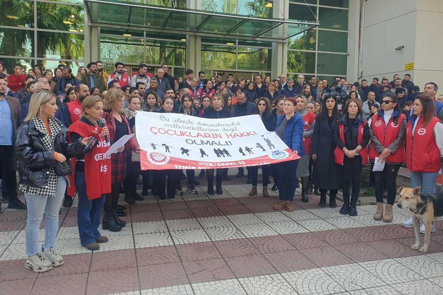 Basın açıklamasını okuyan Genel-İş İzmir 3 No’lu Şube Mali Sekreteri Serap Yılmaz, “Her güne, bir kadın cinayeti, şiddeti, bir çocuk istismarı haberiyle uyanıyoruz. İsmailağa Cemaati’ne bağlı Hiranur Vakfı’nın kurucusu Yusuf Ziya Gümüşel’in kızını 6 yaşında ‘evlendirdiği’ne ilişkin fotoğrafların ortaya çıkmasının ardından, yüzümüze ülkenin gerçeği bir tokat gibi yine, yeniden çarptı” dedi.