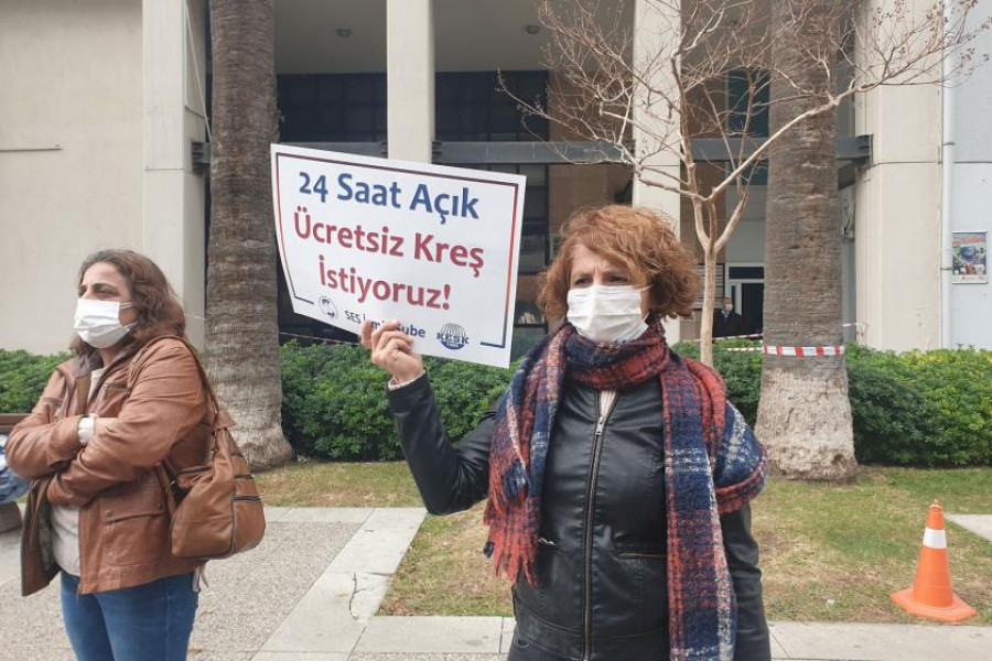 “Tam kapanma”da sağlık çalışanlarının çocuklarını bırakacakları yer olmadığını ve yaşadıkları zorluklara dikkati çeken SES İzmir Şubesi Eş Başkanı Nursel Yücesoy, “Hastanelerde 24 saat ücretsiz hizmet veren kreşler açılmasını istiyoruz” dedi.