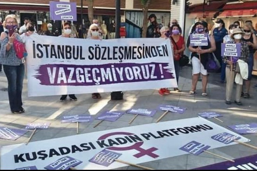 Aydın'ın Kuşadası ilçesinde kadınlar geçtiğimiz aylarda İstanbul Sözleşmesi'nden Cumhurbaşkanı kararı ile çıkılmasını hukuksuz bularak yargıya itiraz başvurusu yapmıştı.