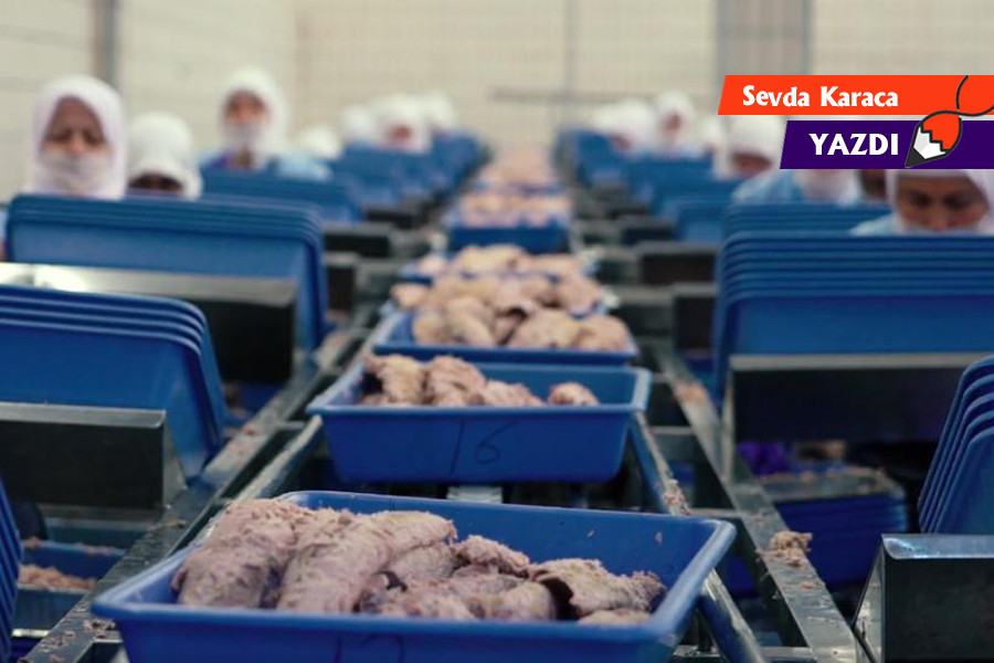 Tuvaletlerin kapılarının kilitlendiği, kadın tuvaletinin ve kadın soyunma odasının girişlerine kamera konulduğu fabrikada, 12 saat çalıştırılan işçilere doğru düzgün bir yemek, molalarda çay ve su bile verilmiyor. Ağırlıkla kadınların çalıştığı fabrikada işçilerin yüzde 70’i taşeron ve şirkete bağlı olarak değil, dayıbaşılık sistemi gibi kişiler üzerinden fabrikada çalıştırılıyor. Çoğunluğu toplumun en çok ezilen kesimlerinden olan Roman, Suriyeli ve Kürt işçiler olduğu için ne hak ne hukuk uğruyor fabrikaya. Sigortaları olmadığı gibi fabrikada ayrı renk formalarla imleniyorlar, en pis işlerde, üretim kilosu kotasıyla, hiçbir hijyen koşulu gözetilmeden çalıştırılıyor. Bu tablo, en pis, en kötü işlerde, köle gibi çalıştırılan kadınların fabrika içinde işçi arkadaşları dahil herkesten ama herkesten hakaret ve şiddet görmesini de kolaylaştırıyor. Ne de olsa hırs çıkarılabilecek boks torbası gibi kadınlar! Hele de güvencesiz ama bu işe mecbur olduğu koşullarda…