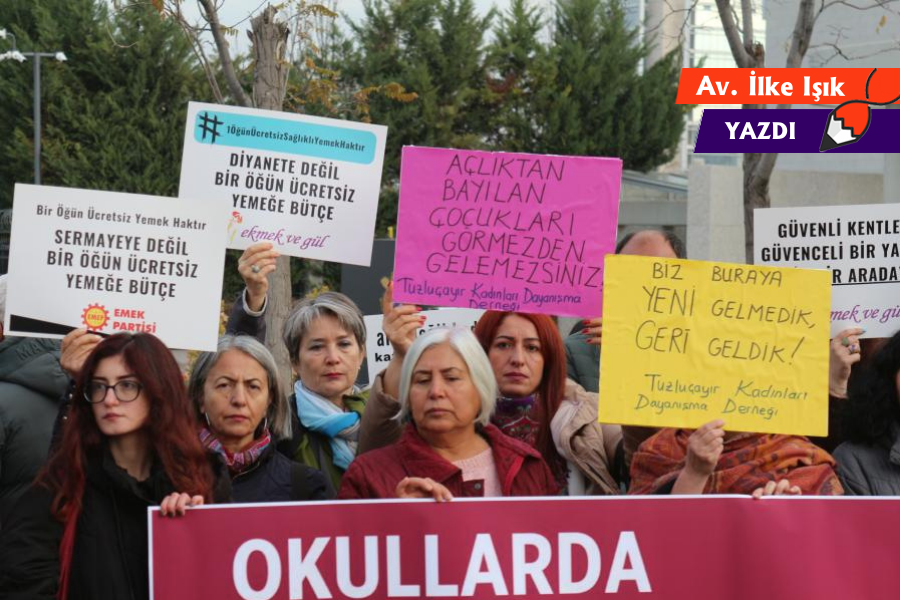 2023 yılı kasım ayında Esenyalı Kadın Dayanışma Derneğinden Necla adına başladık bu sürece. Anaokuluna giden çocuğu için bir öğün ücretsiz yemek uygulamasından yararlanamamış birçok kadın adına aslında. Hemen bu kararı durdurun ve çocuklar anaokullarında ücretsiz yemekten faydalansın, dedik. Ama bu yapılmadı, dosyayı önce Danıştaya gönderdiler.