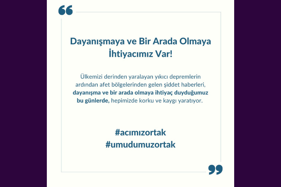 Ülkemizi derinden yaralayan yıkıcı depremlerin ardından afet bölgelerinden gelen şiddet haberleri, dayanışma ve bir arada olmaya ihtiyaç duyduğumuz bu günlerde, hepimizde korku ve kaygı yaratıyor.