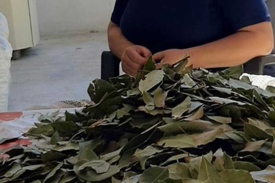 Defneden açılıyor konu. “Nasıl başladın bu işe” diye soruyoruz Dilek’e, “Yokluktan” diyor. Şirket defne yaprağı dolu çuvalları evlerin önüne bırakıyor, kadınlar da temiz olanlarla kırık olanları birbirinden ayırıyor. Daha sonra gelip hem kırık hem de temiz olanları alıyorlar ve sadece temiz olanlar için ücret ödendiğini söylüyor Dilek.