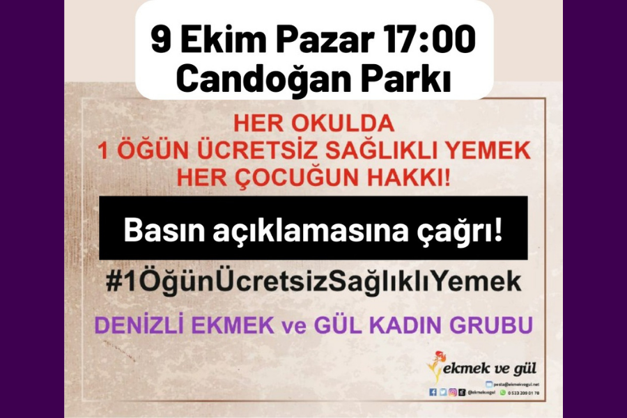 'Her okulda 1 öğün ücretsiz, sağlıklı yemek haktır!' demek için 9 Ekim Pazar günü basın açıklaması gerçekleştirecek.