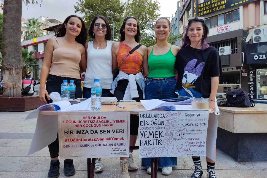 Denizli Ekmek ve Gül Kadın Grubu, açtığı imza stantlarında halkla kampanyayı tartışırken TBMM ve yerel yönetimlere de çağrıda bulunuyor. Denizli Ekmek ve Gül Kadın Grubu açıklamasında, “Aileler çocuklarına yeterli, sağlıklı hatta asgari beslenme olanaklarını sağlayamıyor. Her 4 çocuktan 1’inin okula aç gittiği ülkede, ağırlaşan yaşam koşulları bu tabloyu daha da ağırlaştırıyor. TBMM’de önümüzdeki haftalarda bütçe görüşmeleri başlayacak. Biz diyoruz ki; TBMM’de bütçe görüşülürken çocuklarımız unutulmasın! Asgari ücret genel ücret haline geldi. Kiralar gerçek enflasyon ücretine göre yükselirken ücretlere resmi enflasyona göre zam geliyor. Çocuklarımız yeterli ve dengeli beslenemiyor. Okul masrafları bir yandan, faturalar bir yandan, çocuklarımızın servis ve yemek ücretleri şartları daha da zorlaştırıyor. Biz okullarda 1 öğün ücretsiz yemek sağlanacak bütçenin olduğunu biliyor, çocuklarımız ve geleceğimiz için meclisin harekete geçmesini talep ediyoruz” ifadelerini kullandı.
