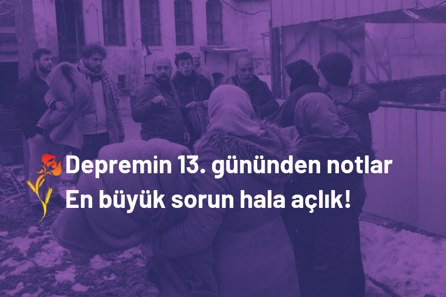- 10 ili yıkan depremlerin üzerinden 13 gün geçmesine rağmen Adıyaman ve Hatay'da en büyük sorun hâlâ açlık. Yemeğe ulaşamama kadınların en büyük sorunu.