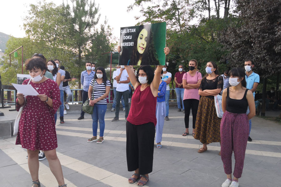 Munzur Üniversitesi öğrencisi Gülistan Doku’nun ailesi, çocuklarının bulunmaması ve şüphelilerin yargılanmamasına karşı Seyit Rıza Meydanı’nda oturma eylemi başlattı. Oturma eylemine başlayan Gülistan Doku’nun annesi ve ablası, Valiliğin yasak kararı gerekçe gösterilerek gözaltına alındı. Anne Bedriye Doku ve Abla Aygül Doku’nun gözaltına alınmasını protesto etmek için Dersim Kadın Platformu, Seyit Rıza Meydanı’nda basın açıklaması gerçekleştirdi. Açıklamada Platform adına konuşan Ela Deniz Albayrak ailenin taleplerinin tüm kadınların talepleri olduğunu belirterek “Aygül Doku ve Bedriye Doku derhal serbest bırakılsın!” dedi.