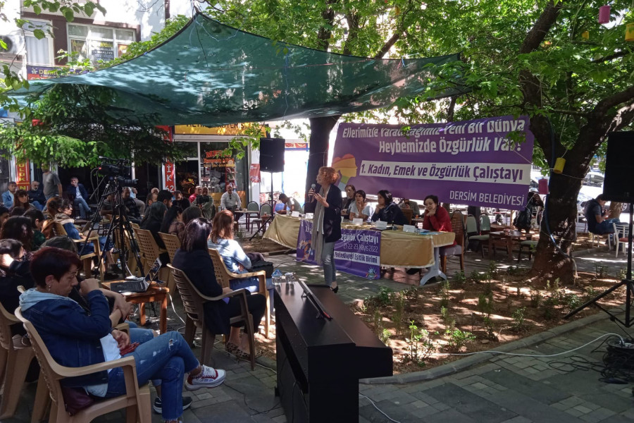 Dersim Belediyesi Eşitlik Biriminin düzenlediği 3 gün sürecek kadın çalıştayı Sanat Sokağı’nda gerçekleşiyor. "Kadın Emeği" başlığıyla düzenlenen ilk gün programında; Melda Yaman "Toplumsal Yeniden Üretim ve Kadın Emeği", Hilal Karul "Kavramsal olarak seks işçiliği ve seks işçisi olmak", Arzu Çerkezoğlu "Kadın emeğinin güncel durumu", Fulya Alikoç "Direnişlerin aynasında kadın işçi olmak: olanaklar ve kısıtlar", Şükran Kablan Yeşil ise "Kamuda kadın emekçiler" başlığı ile sunumlar yaptı. Toplumsal cinsiyet, kamu alanında kadının rolü, emek ve kadın, siyaset şeklinde çok sayıda konunun ele alınacağı çalıştayın açılış konuşmasını Dersim Belediye Başkan Yardımcısı Canan Ay yaptı. Kadının toplumdaki rolünü görünür kılmak amacıyla çalıştayı düzenlediklerini belirten Ay, kentte bulunan tüm kadınları çalıştaya katılmaya davet etti.