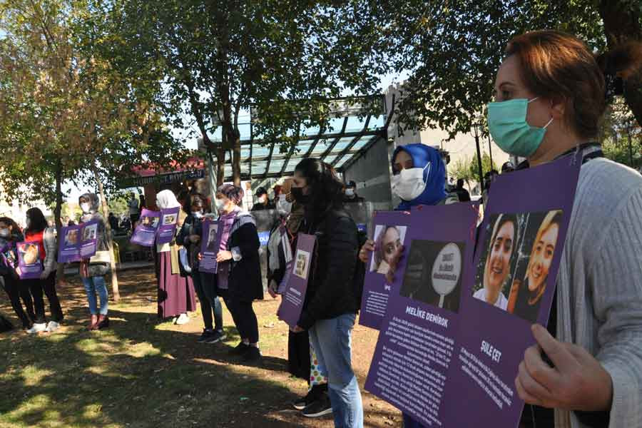 Dağkapı Meydanı’nda yapılması beklenen anma polis ablukasına alınarak engellendi. Polisle yapılan müzakere sonucu meydan yanında bulunan parkta anma yapılmasına izin verildi. Katledilen kadın fotoğraflarını ellerinde taşıyan kadınlar, “Erkek vuruyor devlet koruyor”, “Jin, jîyan, azadî”, “Kadın cinayetleri politiktir” sloganları attı.