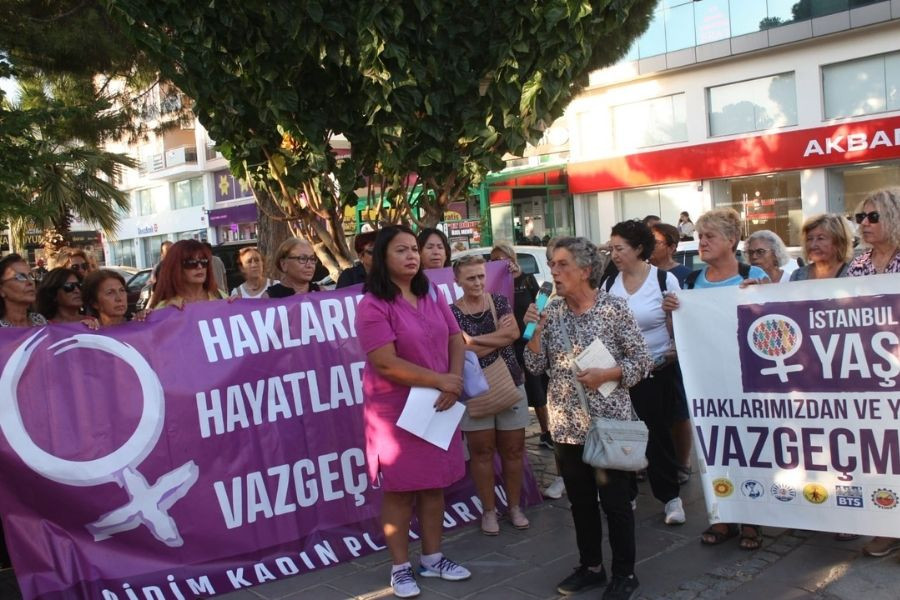Didim Kadın Platformu çağrısıyla Ziraat bankası önünde toplanan, kadınlar adına basın açıklamasını okuyan Özlem Bayrak Mutluay, "kadın cinayetleri bireysel değil toplumsal bir hal aldı. Şiddetten, tacizden, katliamlardan kadınlar örselenmeye devam ediyor." dedi.