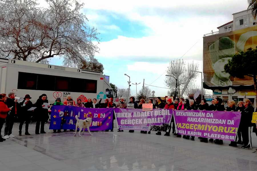 Dikili Atatürk Meydanı’nda bir araya gelen Dikili Kadın Platformu, artan kadın şiddetine, cinayetlerine dur demek için bir araya geldi. Sık sık “Kadınız haklıyız şiddete karşıyız”, “Susmuyoruz, korkmuyoruz, itaat etmiyoruz”, “Erkek adalet değil, gerçek adalet” sloganların atıldığı açıklamayı ise kadınlar adına Münevver Kahraman okudu.
