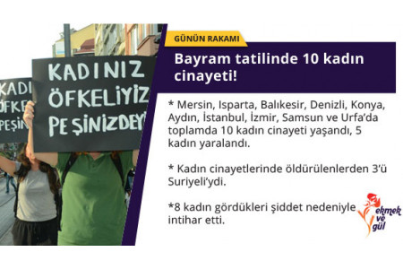 Bayram herkes için güzel geçmedi... 10 günlük bayram tatili boyunca 10 kadın cinayeti yaşandı. 8 kadın gördükleri şiddet nedeniyle intihar etti.
