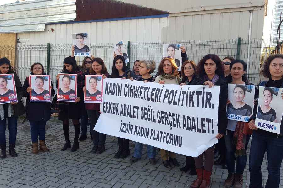 Dava sonrası adliye önünde açıklama yapan İzmir Kadın Platformu, davanın takipçisi olacaklarını belirterek, gerçek demokrasi ve adalet istedikleri.