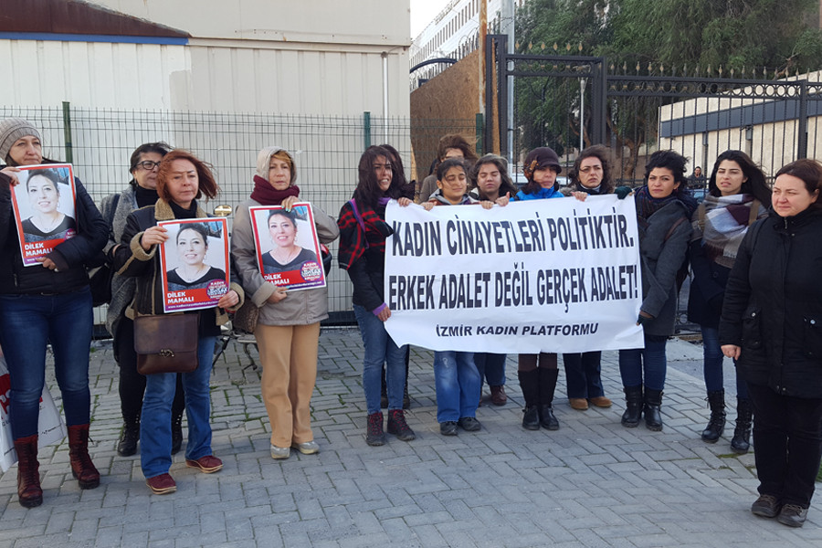 İzmir’in Buca ilçesinde 15 yıldır dini nikahla yaşadığı Mehmet Sabırlı tarafından öldürülen Dilek Mamalı cinayeti davasının karar duruşması bugün İzmir Bayraklı Adliyesi 9. Ağır Ceza Mahkemesinde görüldü. Mahkemede sanık Mehmet Sabırlı, müşteki avukatları hazır bulunurken, öldürülen Dilek Mamalı’nın ailesi ve kadınlar da davayı izledi.