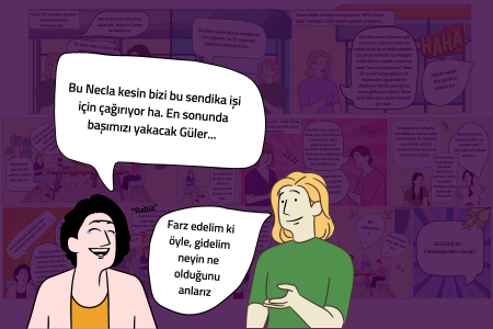 Birkaç işçiyle de bu fabrikada işe girene kadar çalıştıkları farklı işkollarındaki koşulları konuşuyoruz. İşçiler karşılaştırıyor tekstil ve gıda sektörlerini… Sendikasız iş yerlerindeki koşullarını ve var olan sendikaların da mücadele anlayışlarını örneklendiriyorlar. Çalıştıkları çoğu fabrikada ise işçilerin “kölelik koşulları” çıkıyor karşılarına. İşçiler, nerede olursa olsun, kötü koşullara karşı mücadelenin her zaman olacağını söylüyor. Fabrikada sürekli aynı işi yapmaları nedeniyle artık güçsüzleşen kolları, boyun fıtığı olanların iğnelerle çalışması, gördükleri baskı, fazla mesailer, artan iş yükü, molaların iş yükünden kaynaklı da yetersizliği… Sıralanan sorunlar karşısında bir işçi şöyle söylüyor: “Biz insan değil miyiz? Koşullarımızın düzeltilmesini istemek suç mu?”