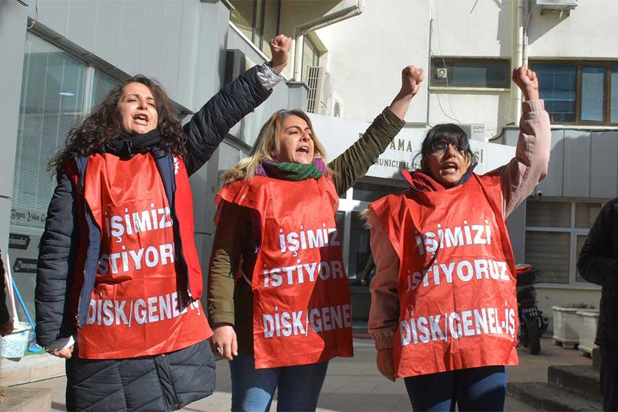 AKP’li Bergama Belediyesi DİSK’e bağlı Genel-İş üyesi 3’ü kadın 4 işçiyi performans düşüklüğü gerekçesiyle işten çıkardı. İşten çıkarılan Nazlı Deniz Tan, Alev Çakır ve Gonca Çetin “İşimizi istiyoruz” yazılı yeleklerle belediyenin önünde eyleme başladı. Performansın bahane olduğunu, esas nedeninin Hizmet-İş’e geçmeyi reddetmelerinin olduğunu söyleyen işçiler işe geri dönene kadar mücadele edeceklerini söyledi.