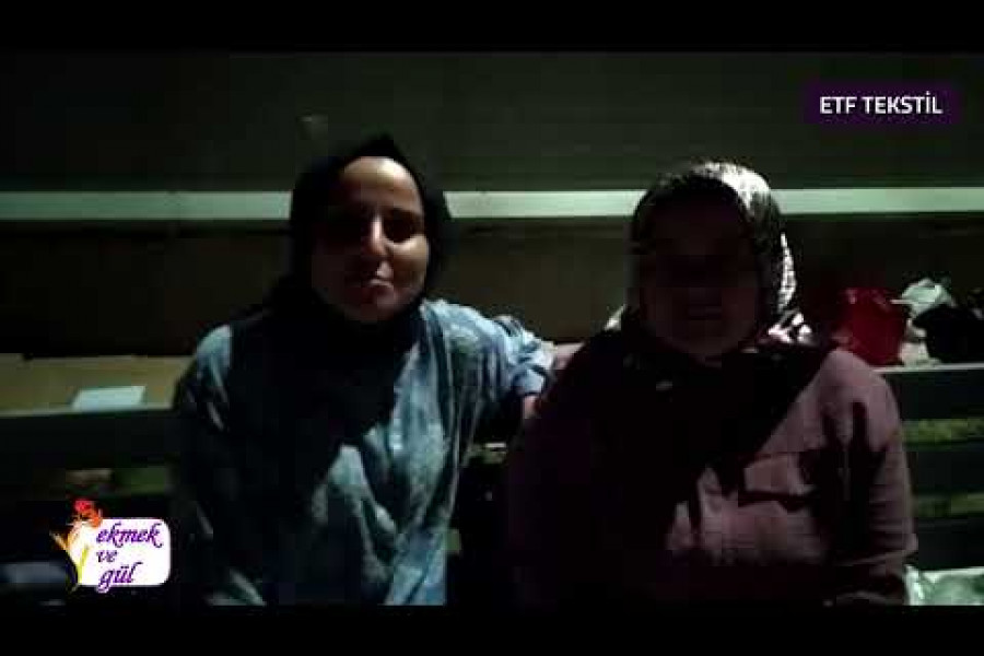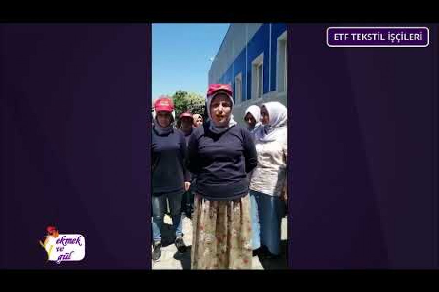 Merhaba, ben 2017 yılından beri ETF Tekstilde çalışıyorum. Burada öyle bir çalışma sistemi kurulmuş ki insanca çalışmıyoruz, at gibi yarıştırılıyoruz. O kadar yoğun çalışıyoruz ki karşımdaki su sebilinden su içemediğim günleri biliyorum. Emeklerimizin karşılığı bu olmamalıydı. Yaşadıklarımız bize birer travma gibi geliyor. Ücretlerimiz gecikti, kiralarımız gecikti, kredimiz faturamız gecikti ve bunların bedelini yine biz ödedik. Her zaman burada fedakârlığı biz işçiler yaptık. Benim üniversite öğrencim lise öğrencim var. İki ev bakıyorum; kiram, kredilerim var. Önümüzdeki ay ücretim ikramiyelerim verilmezse ne yapacağız diye düşünüyorum. İlk başta patronun bize verdiği güne inandık. İkramiyelerimizin yatırılacağı gün gecikti, hâlâ ödemediler. Sürekli oyalayıp erteliyorlar. Tazminatımızı ve ikramiyemizi vermedikleri için biz de fabrikaya kapandık. Çoğu kadın olan fabrikada arkadaşlarımızla nöbet tutuyoruz. Herkesten destek bekliyoruz. İşçiyiz haklıyız desteğinizle kazanacağız.