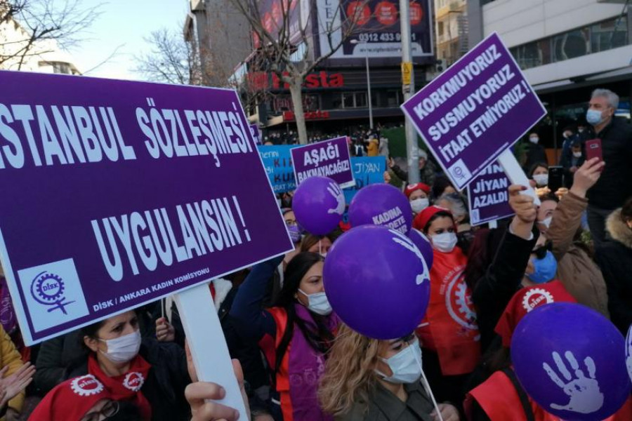 Pandemide kadına yönelik şiddetin ve kadın cinayetlerinin de giderek arttığı ifade edilirken İstanbul Sözleşmesinden çekilme karraına da tepki gösterildi: “ Bu süreçte kadınlar açısından bu eşitsizlikleri, adaletsizlikleri giderecek politikalar hayata geçirilmesi gerekirken, İstanbul Sözleşmesi önce tartışmaya açıldı, ardından Türkiye sözleşmeden imzasını çekti. Oysa ülkemizde şiddete karşı İstanbul Sözleşmesi’nin etkin bir şekilde uygulanmasına ihtiyaç vardır. Biz kadın işçiler, İstanbul Sözleşmesi’nin ve 6284 sayılı Yasa’nın uygulanmasını talep ediyoruz. Çalışma yaşamındaki şiddetin önlenmesi için ILO’nun 190 sayılı sözleşmesinin kabul edilmesini istiyoruz.”