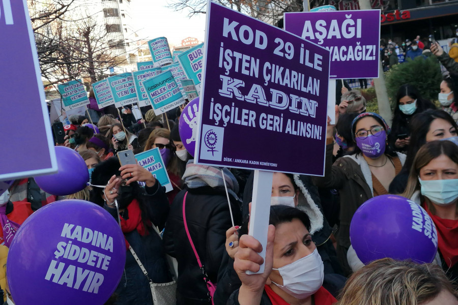 Salgın boyunca Kod-29 uygulamasının kadınlara dönük bir silah gibi kullanıldığı, 6284 sayılı kanununun askıya alınıp evden uzaklaştırma tedbirlerinin uygulanmadığı, Meclis’ten geçen yasa ile şiddet faillerinin evlerine gönderildiği, kadınların sığınaklara kabulünün zorlaştırıldığı ve can güvenliklerinin risk altına girdiği, ayrımcılığa ve nefret söylemine uğrayan LGBTİ+’ların daha fazla hedef gösterildiği ancak bu şartlara rağmen Cumhurbaşkanı Erdoğan'ın İstanbul Sözleşmesi’ni feshettiği hatırlatıldı.