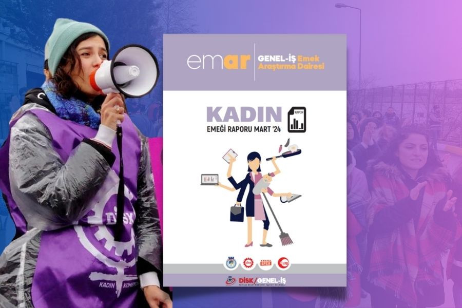 DİSK/Genel-İş Emek Araştırmaları, “8 Mart Kadın Emeği Raporu” yayımladı: “kadınların kazanılmış haklarına yönelik saldırıların arttığı bu ortamda evde, sokakta, işyerlerinde, sendikalarda; toplumun her alanında toplumsal cinsiyet eşitliğinin sağlanmasına yönelik politikaların geliştirilmesi ve uygulanması için, eşit, özgür ve şiddetsiz bir yaşamın kurulması için verdiği mücadeleyi yükseltecek çalışmalar yapmayı sürdürüyoruz. Bu doğrultuda kadın mücadelesine destek olmak ve kadın emeğinin görmezden gelinen sorunlarına dikkat çekmek ve görünürlüğünü artırmak için her yıl olduğu gibi bu yıl da “8 Mart Kadın Emeği Raporu”muzu paylaşıyoruz.”
