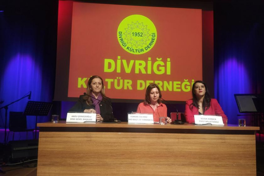 DİSK Genel Başkanı Arzu Çerkezoğlu ve Emek Partisi Antep Milletvekili Sevda Karaca’nın konuşmacı olduğu söyleşinin moderatörlüğünü DKD Başkan Yardımcısı Türkan Solmaz yaptı.