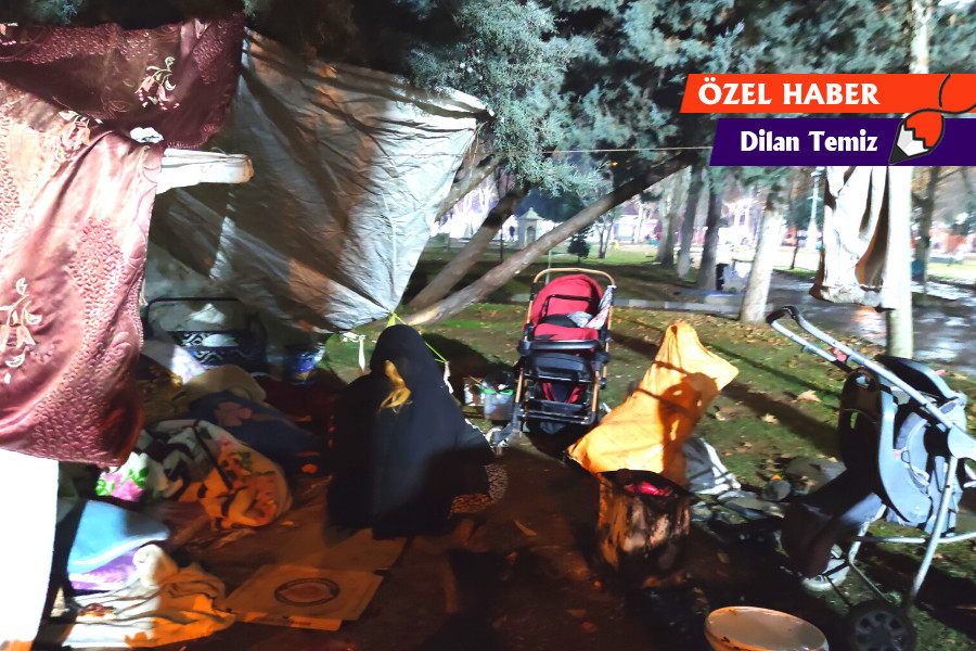 Bir de hasarlı evlerine dönmek zorunda kalanlar var… Ayşe İçmez onlardan biri. Evine dönmek zorunda kalışını şöyle anlatıyor: “Ne yapalım çadır yok bir şey yok. Çadır olsa dahi hava buz gibi dışarda donmaktansa evimize dönelim dedik. Ara ara bu parka geliyoruz, yatıya eve gidiyoruz. Çok tehlikeli ama yapacak bir şey yok. Dışarda kalsak olmuyor içerde kalsak olmuyor.”MÜLTECİLERİN HİÇBİRİNİN ÇADIRI YOKTU