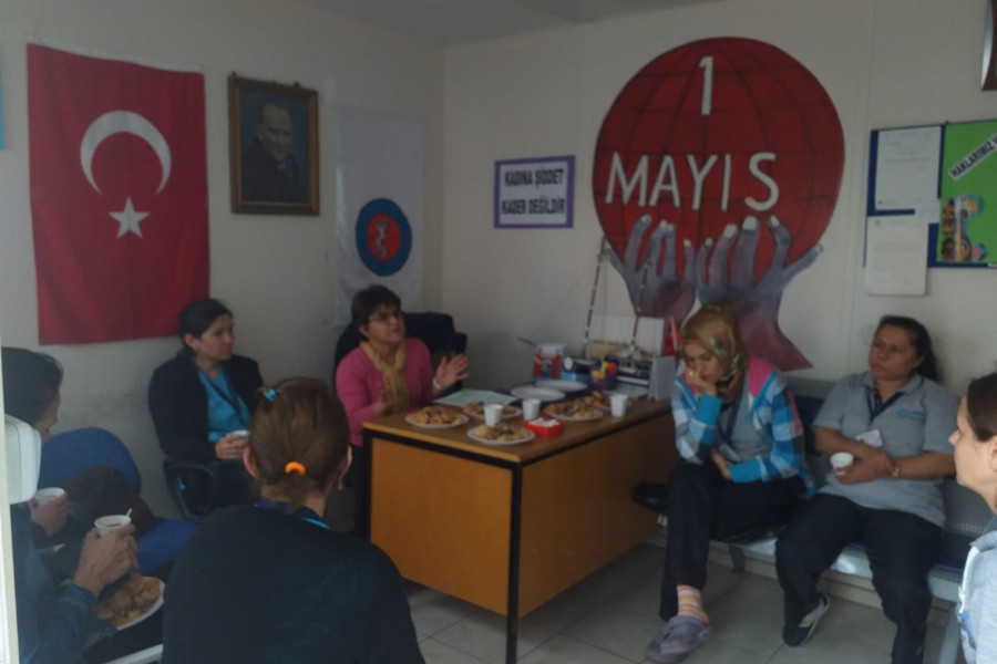 Sağlık İşçileri Sendikası, Tez Koop İş Sendikası ve SES işyeri temsilciliklerinin ortak çağrısıyla bir araya gelen Dokuz Eylül Üniversite Hastanesi çalışanları kadına şiddet sorununu tartıştı.