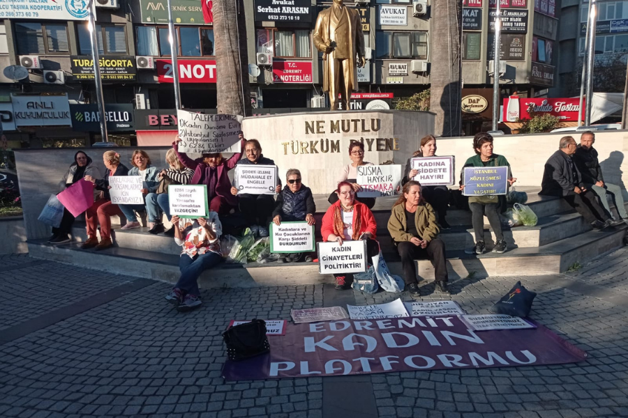 Edremit Kadın Platformu 30 Ekim'de başladığı yaşam nöbetine devam ediyor. Kadın ve çocuk katliamlarına, tacize, tecavüze karşı Kasım ayı boyunca her çarşamba Edremit'te ve her Cumartesi Altınoluk'da saat 16.30-17.30 arası sessiz oturma eylemi yapan kadınların bir diğer talebi de Edremit'te kadın danışma evi açılması.