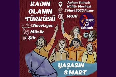 2 Mart Pazar günü Edremit Ekmek ve Gül Grubunun çağrısıyla Edremitli kadınlar Ayhan Şahenk Kültür Merkezinde buluşacak.