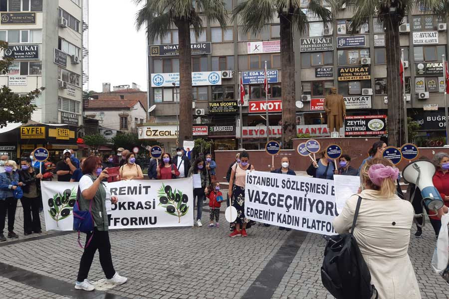 Edremit Demokrasi Platformu ve Edremit Kadın Platformu yaptıkları eylemde İstanbul Sözleşmesi’nden vazgeçmeyeceklerini belirttiler.