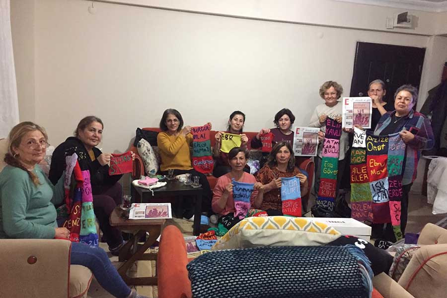 *Kumaşlara öldürülen kadınların isimlerini işleyerek pankart hazırlamak,